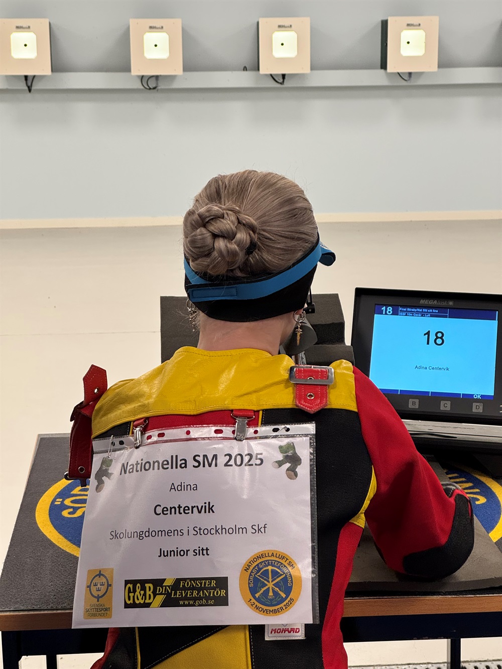 Lördagen sköts sittande med stöd. I juniorklassen lyckades Adina få till hela 424,3 vilket gav en 8e plats i grundomgången och därmed även en finalplats. I finalen sköt hon 52,9 och 52,3 vilket till slut gav en 9e plats i tävlingen! Även Elliot sköt nytt PB i grundomgången med 421,2 vilket gav en 21a plats. Tillsammans gav deras resultat en 5e plats i lagtävlingen, endast 0,1(!) poäng från fjärdeplatsen, och bara 0,4 poäng från bronset! Adina deltog även i sittande senior tillsammans med Elinor, där ingen av de riktigt fick till det denna gång.